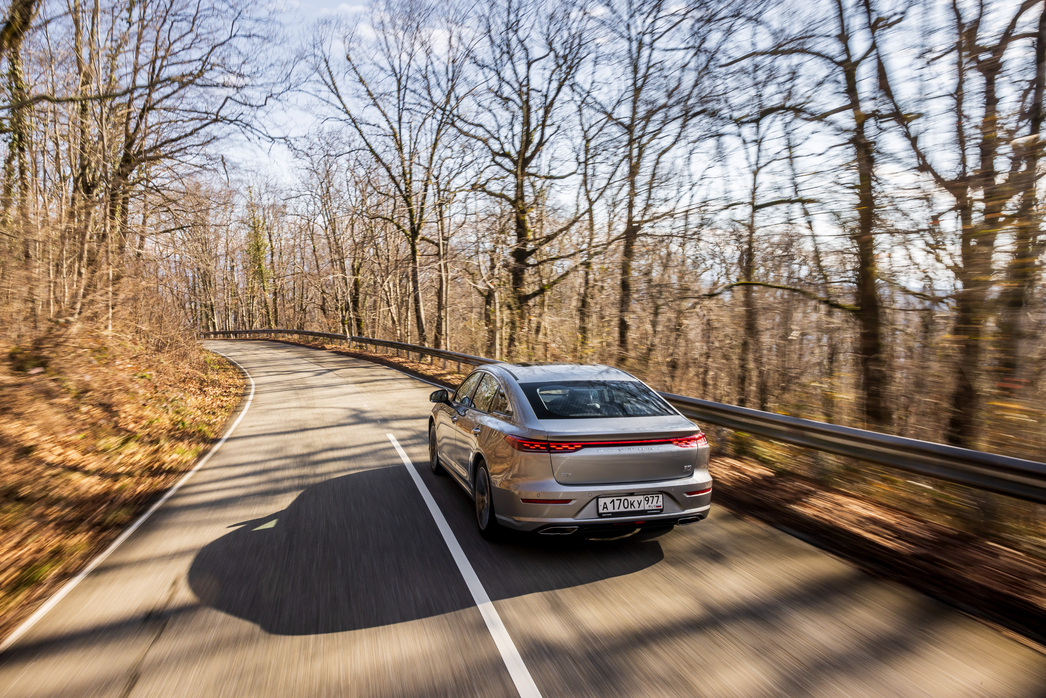 Руль по-китайски пуст, однако сами настройки подвески инженерам удались — с предложенными сочинскими дорогами неровностями справилась на твердую четверку. Возможно, она чуточку жестче нужного, за что и потеряла один балл. Платой выступает уверенное движение как на прямике, так и в поворотах: ледяное испытание, по понятным причинам, нам провести не удалось, но по асфальту Bestune B70 едет, будто по рельсам. И никакие стыки-ямы ему неудобств не доставляют.