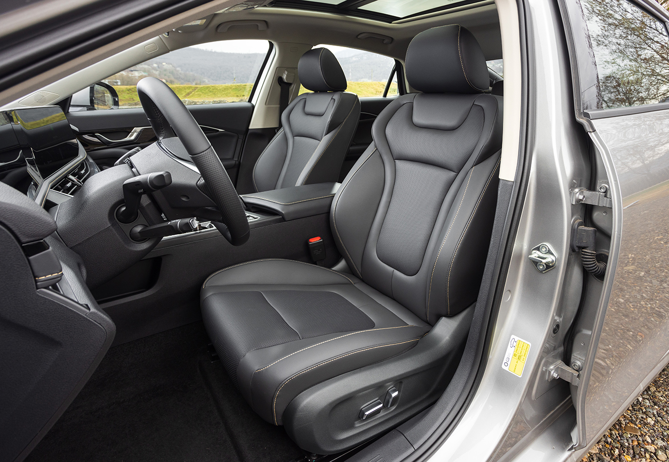 Лобовое стекло, руль и задний диван остались без «доброго тепла». Электрические настройки -только водителю, все остальные и рычагами подвигают. Памяти сидений нет. Беспроводная зарядка, единственный USB для заднего ряда и скромная климатическая установка — вот, в общем, и весь ассортимент опций.