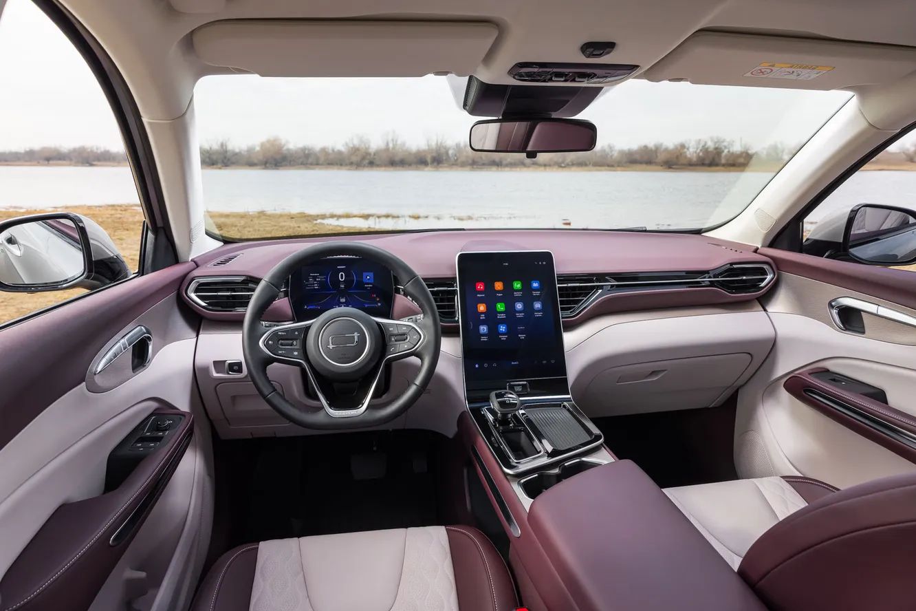 Внутри флагманский кроссовер бренда повторяет актуальные нынешние тренды на наличие большого экрана, минимум физических кнопок и текучие формы приборной панели. Контрастная двухцветная отделка придает ощущение премиальности. Новинка позиционируется как семейный кроссовер. А что главное для такой машины? Правильно, вместительность! По длине (4718 мм) и размеру колесной базы (2772 мм) T90 сопоставим с такими кроссоверами, как Skoda Kodiaq, новым Geely Atlas или Chery Tiggo 8 Pro Max. Это обеспечивает ему солидный запас внутреннего пространства: даже высокие люди отметят запас пространства в районе коленей и над головой, а объем багажника составляет 585 литров и увеличивается до 1365 литров со сложенными задними сиденьями.