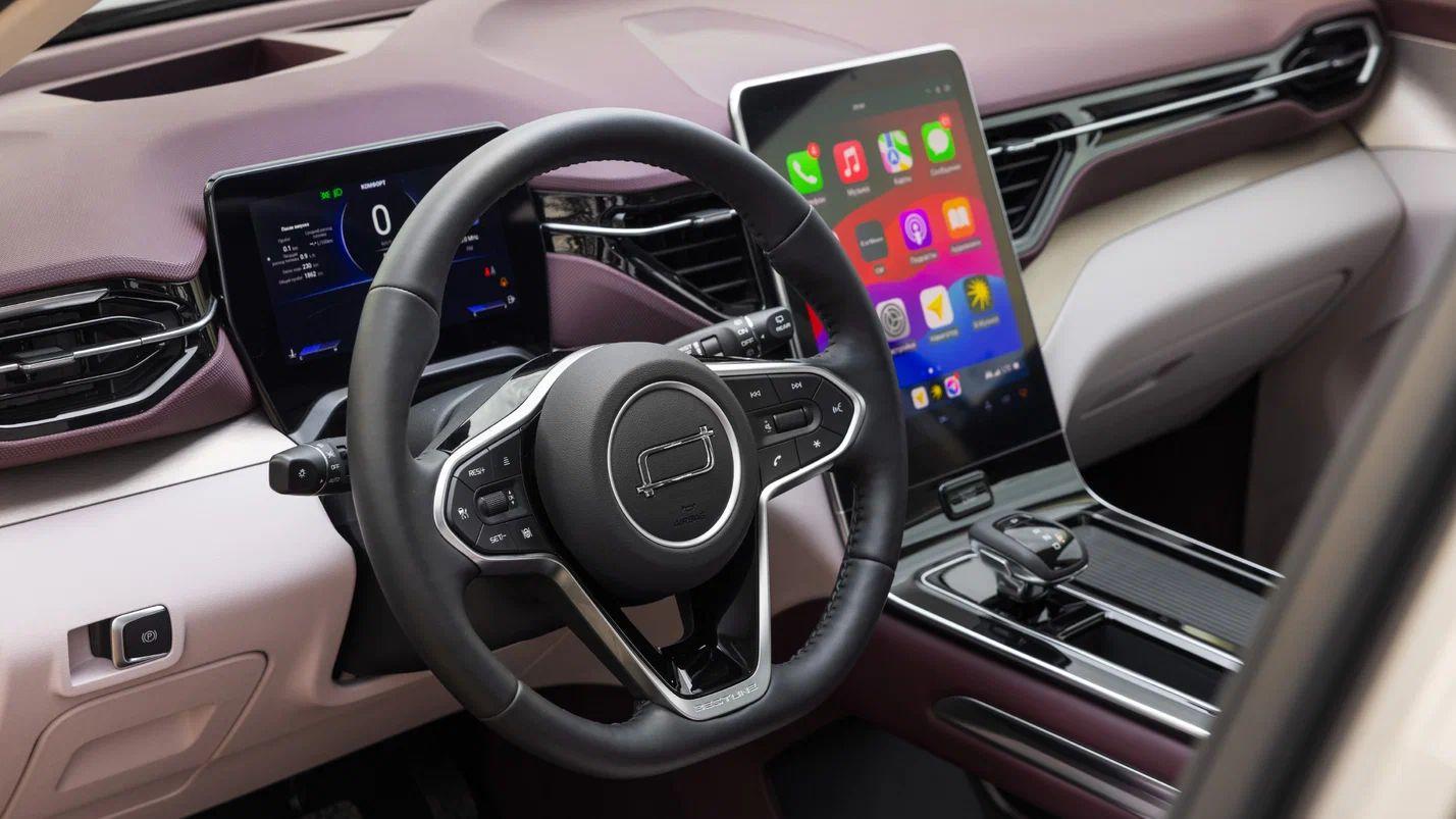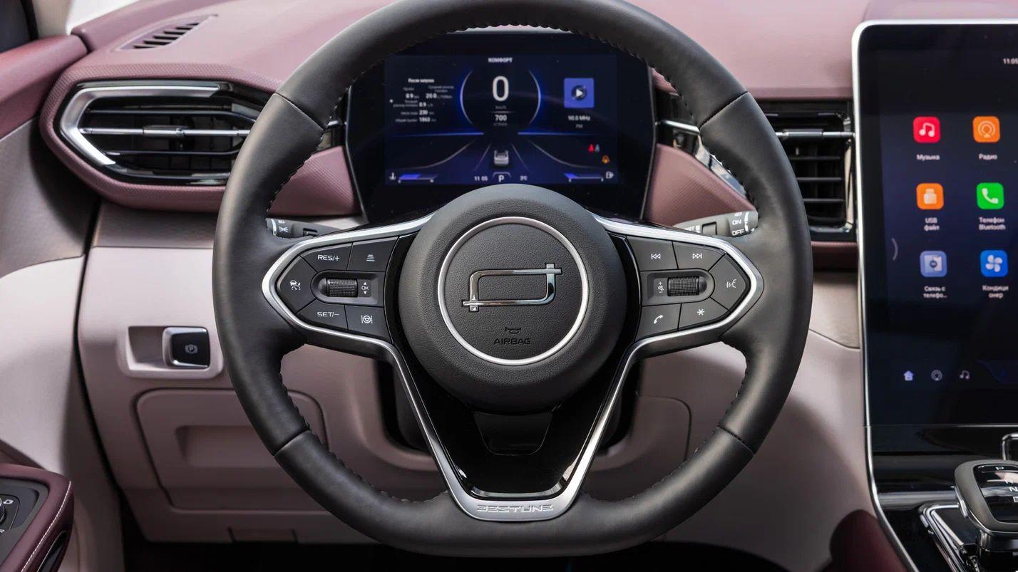 Если облик вседорожного Bestune не отпугивает консервативного покупателя, местами напоминая ещё не забытые в России модели Nissan и Kia, то интерьер диктует новые правила коммуникации с машиной — всё через экран. Количество кнопок в салоне T90 минимально, а часть их будто нарочно разбежалась от водителя, освободив на центральном тоннеле площадку для телефона. Аварийка — на потолке. Ручник — слева от рулевой колонки, а клавиша запуска мотора почти слилась с глянцем портретно ориентированного медиаэкрана, к разделам которого придётся обращаться то за настройкой климата, то за сменой режима движения, то за включением подогрева сидений. Хорошо хоть за настройку зеркал и головной свет по-прежнему отвечают рычажки.